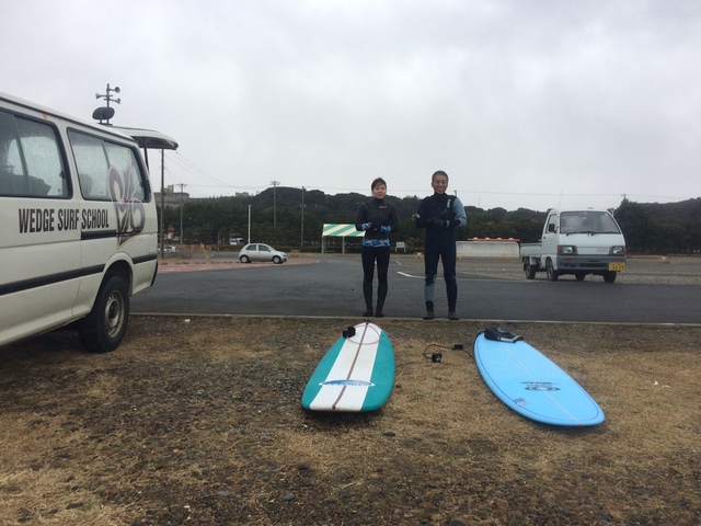 昨日の陽気とは一転、通常の2月に戻った今日は半年振りのサーフィンというOさんと本日NEWボードをおろすAさん2名のスクールでした。朝のうちはそんなに冷え込んでいませんでしたがお昼頃から時折りみぞれ交じりの雨も降りだし真冬の気温となり水温も10℃を切っているのですが気温より水温の方が温かく感じるくらいスクール中も一時期は強い風とみぞれが顔に当たりまさに真冬のサーフィンでした!